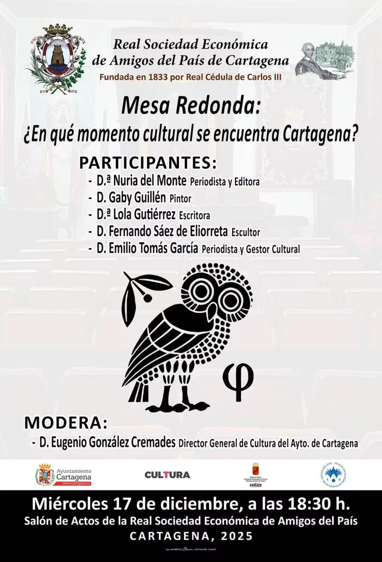 El 17 de diciembre tuvo lugar en el Salón de Actos de la Real Sociedad Económica de Amigos del País de Cartagena una mesa redonda con el título ¿En qué